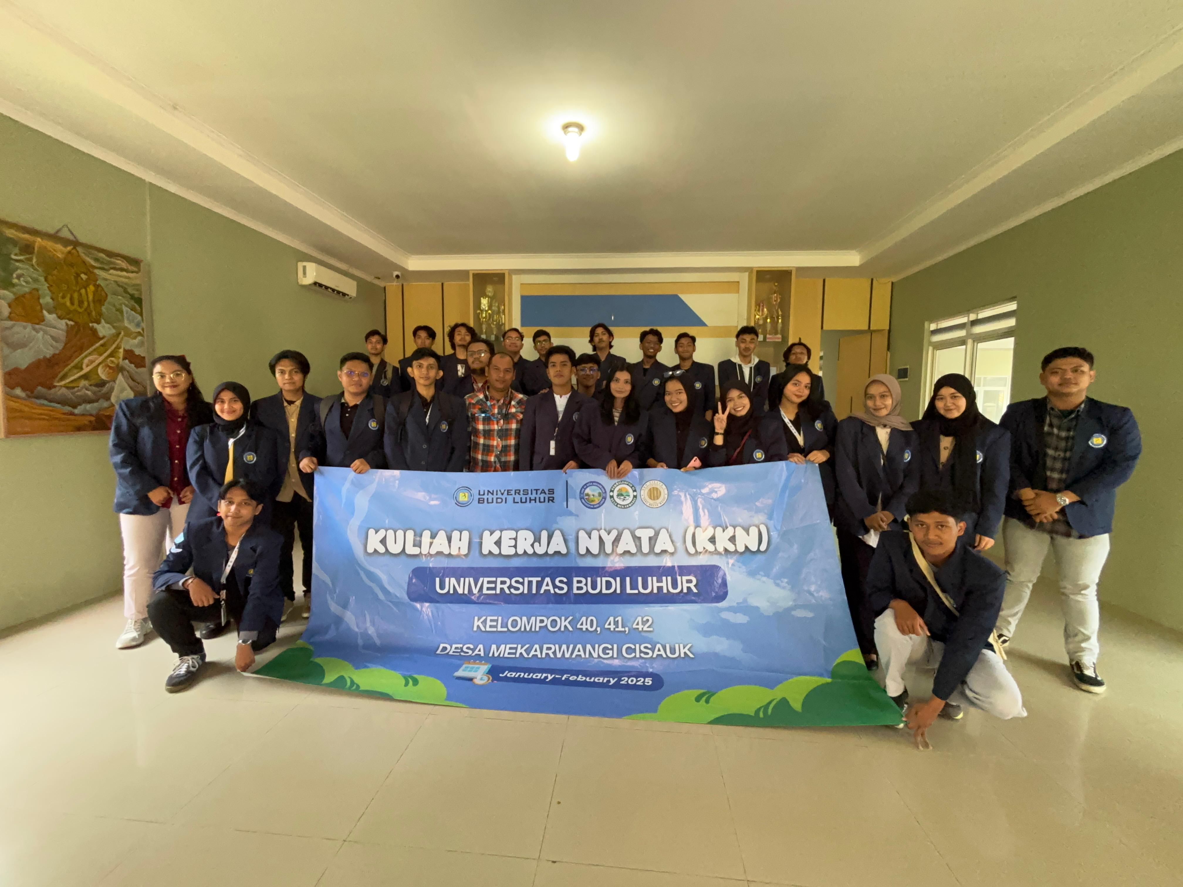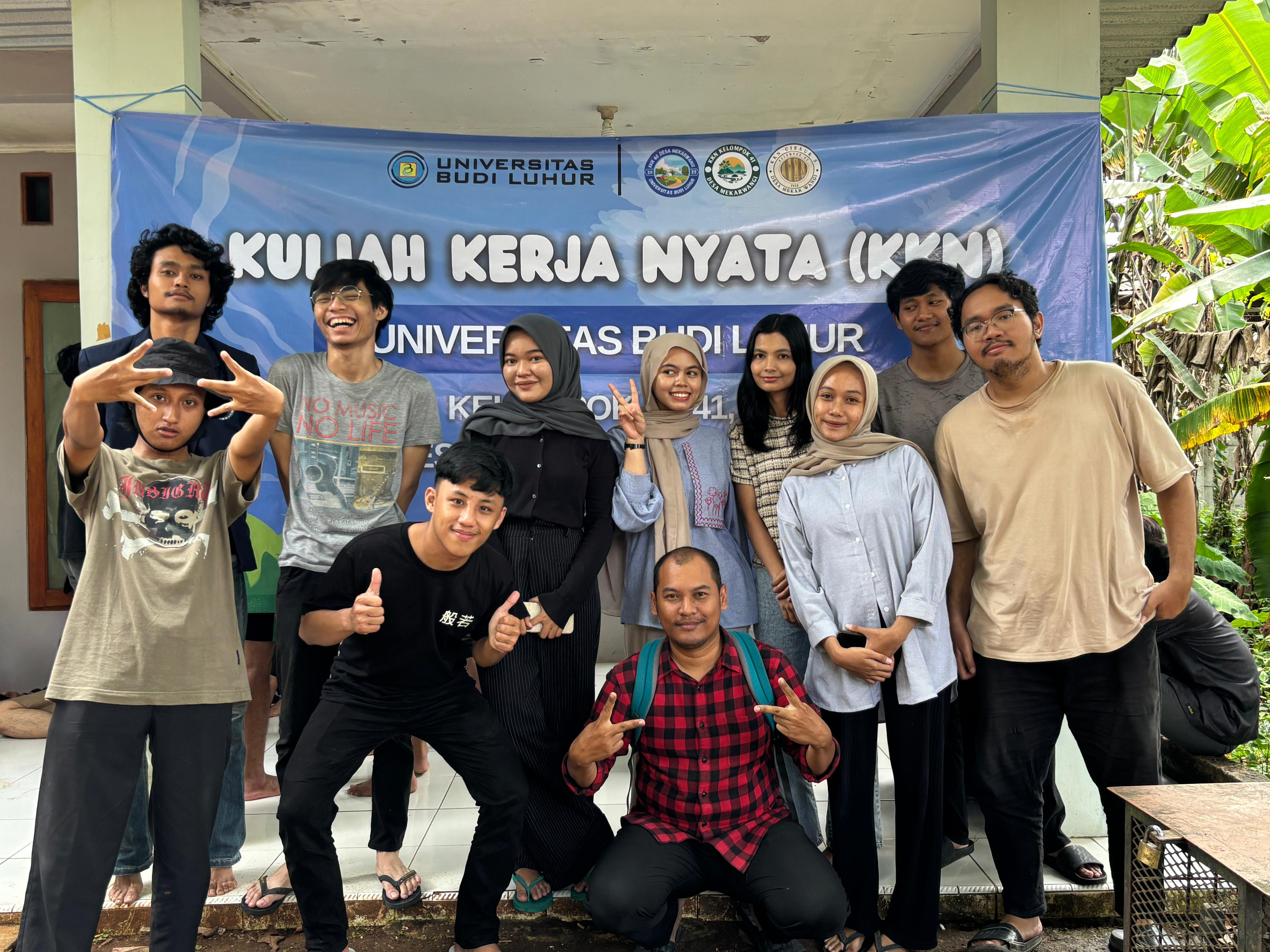KKN Kelompok 41 merupakan salah satu kelompok mahasiswa dari Universitas Budi Luhur yang menjalankan program pengabdian di Desa Mekarwangi. Kelompok ini terdiri dari mahasiswa lintas jurusan yang bekerja sama dalam merancang serta melaksanakan berbagai program, mulai dari kegiatan edukasi, pemberdayaan UMKM lokal, hingga aksi pelestarian lingkungan. Melalui program ini, mahasiswa tidak hanya mengasah keterampilan dan wawasan mereka, tetapi juga berkontribusi nyata dalam menciptakan perubahan positif bagi masyarakat.